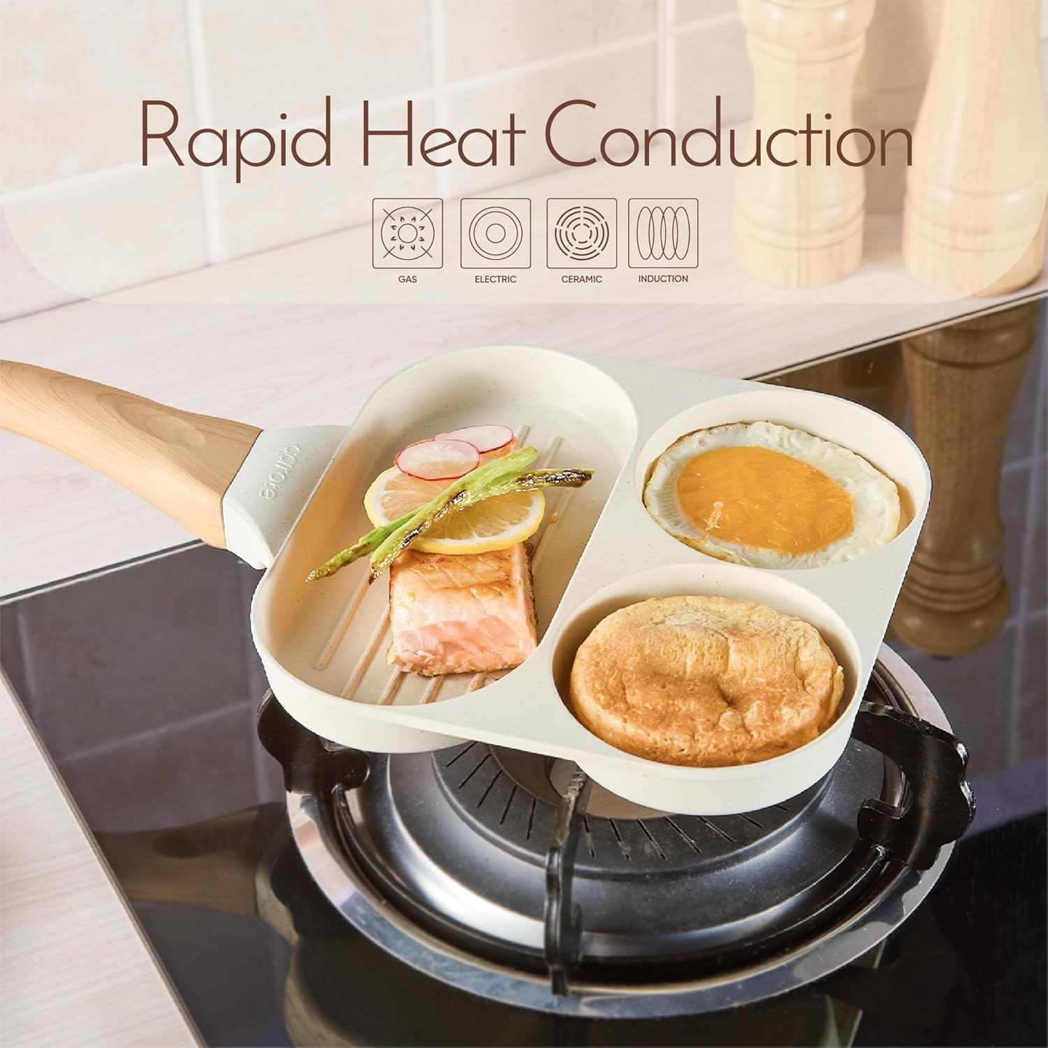 Eco-friendly Granite Non-Stick Material: Carote egg pancake pan with nonstick granite material, Free of PFOS, PFOA, our 3-in-1 egg frying pan ensures your daily cooking is always safer and healthier.